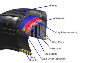 تایر خودرو از اجزای مختلفی تشکیل شده است که وجود هر یک برای عملکرد صحیح و ایمن آن حیاتی است. تایرها ساختاری لایهای دارند که در تصویر زیر بهخوبی به نمایش درآمدهاند.